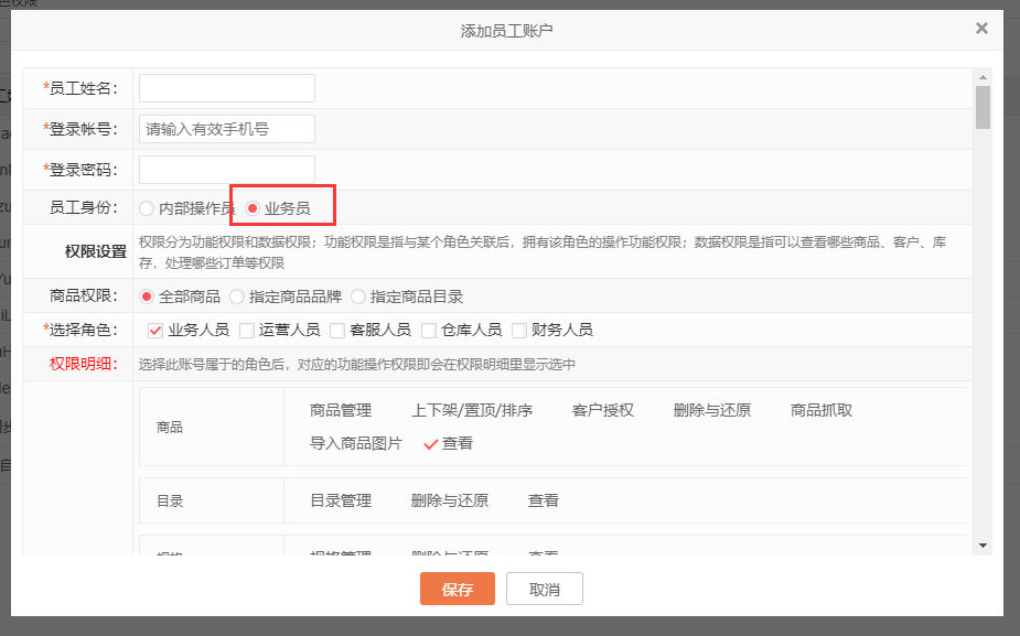 給業(yè)務(wù)員建立賬號,讓業(yè)務(wù)員梳理手上客戶資源,并提前建立綁定關(guān)系> 設(shè)置業(yè)務(wù)員賬號