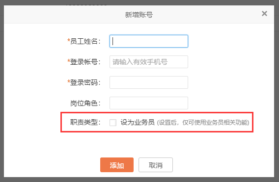 在后臺設置中,添加員工賬號時,為其標記為業務員后,該角色即創建成功。此后,所有端口管li員、業務員登錄端口統一,登錄操作不再做區分。不同身份在登錄界面切換“管li員/客戶”入口即可。并且此后不再有快馬pi發APP,快馬業務員APP,統一為一個快馬APP。