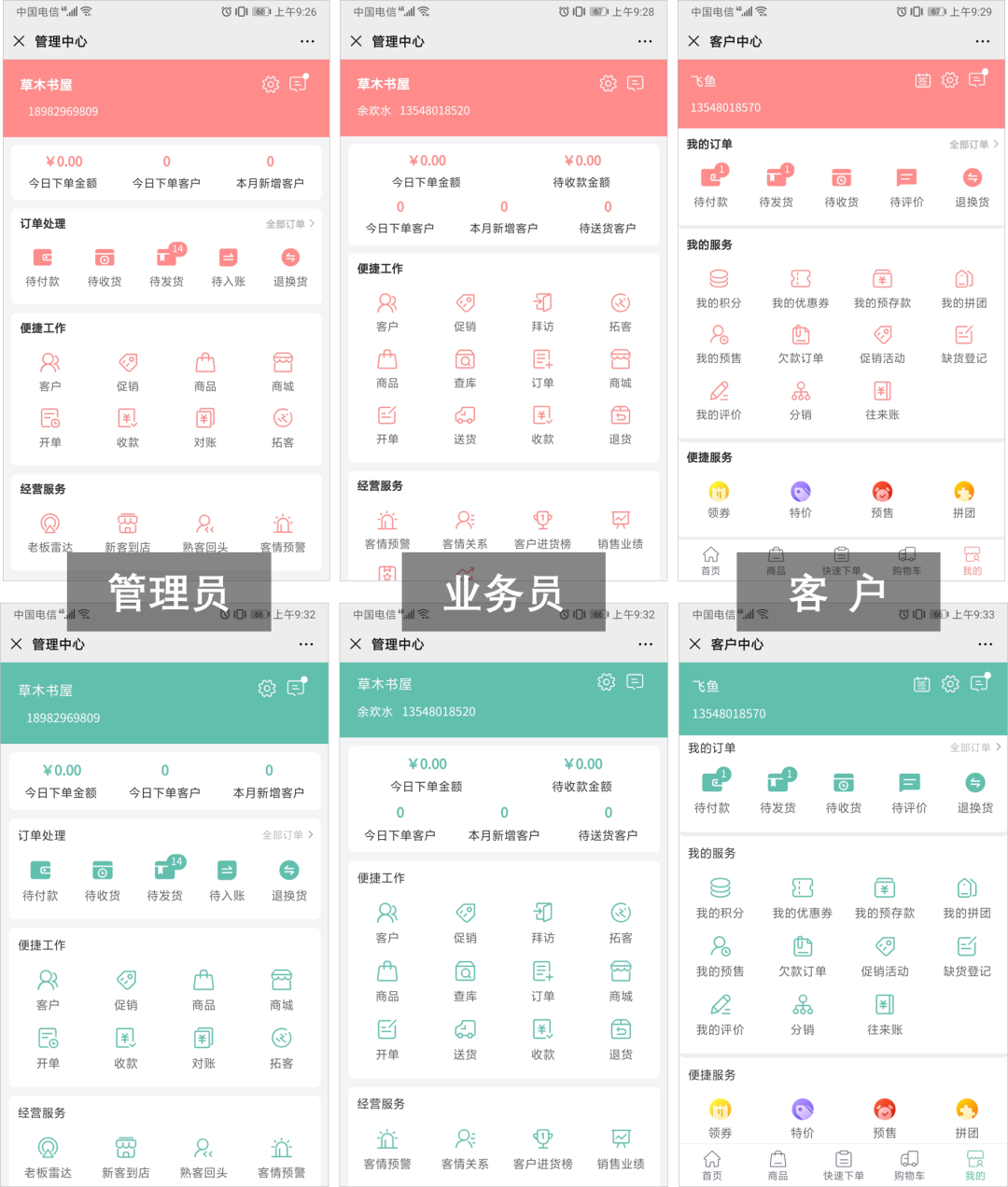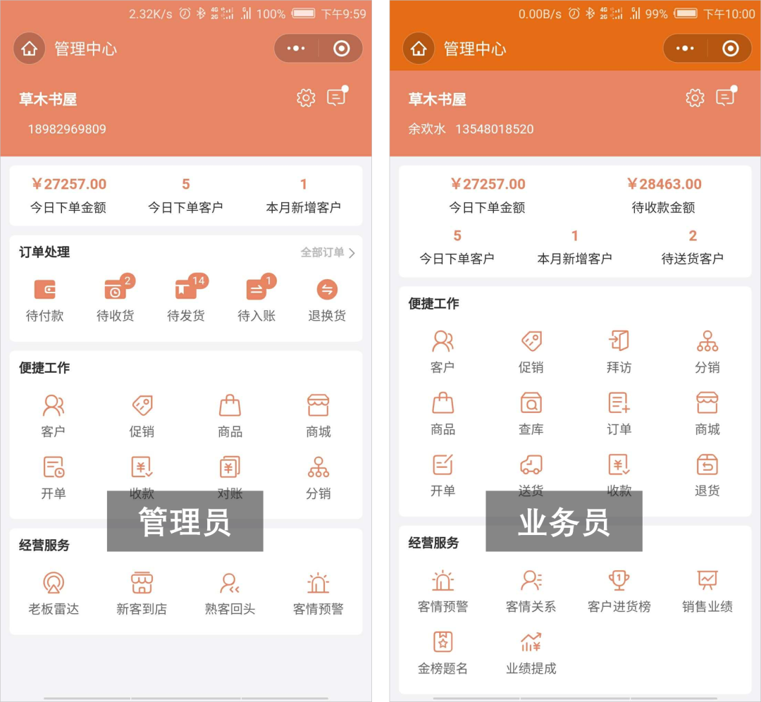 du立小程序版,除了以前的訂貨端,現在管li員、業務員也可以使用小程序來進行業務管理跟進了。