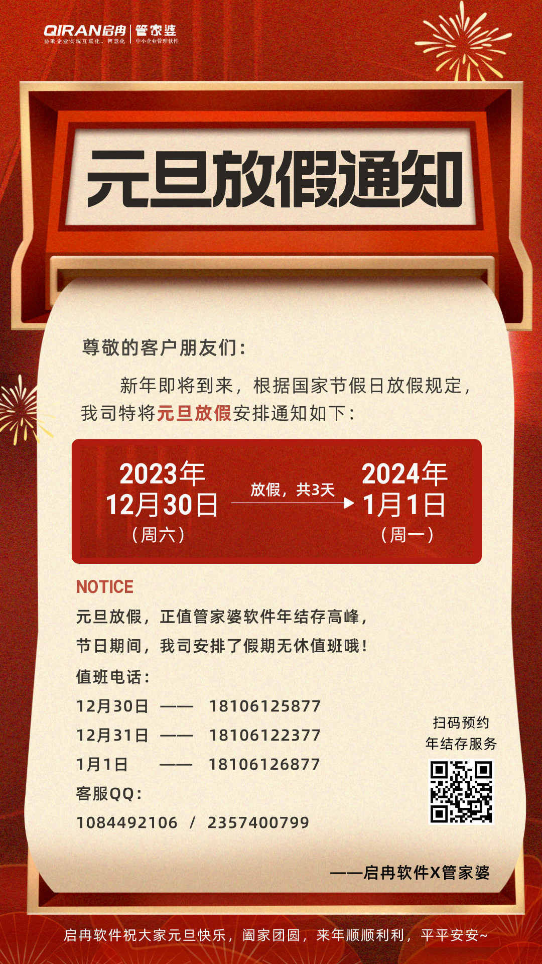 公告 | 啟冉軟件2024年元旦放假通知