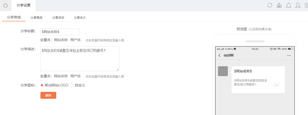 可自定義分享鏈接的展示內(nèi)容,若商家不設(shè)置,則系統(tǒng)顯示系統(tǒng)默認(rèn)內(nèi)容