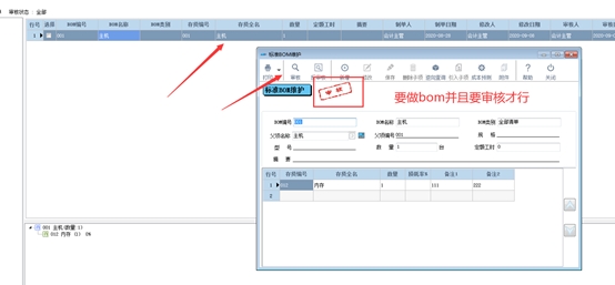 檢查基礎資料—生產資料—標準bom里面是否有做相關bom并且審核。