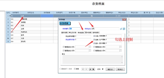 2、存貨檔案—其他信息—沒有勾選“自zhi”